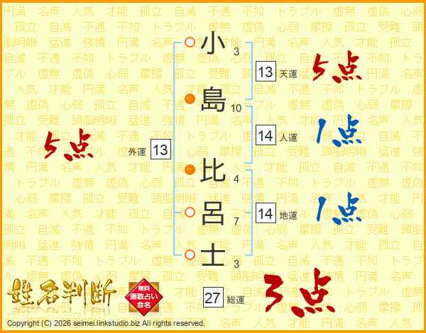 小島比呂士さんの総運は27画の3点!