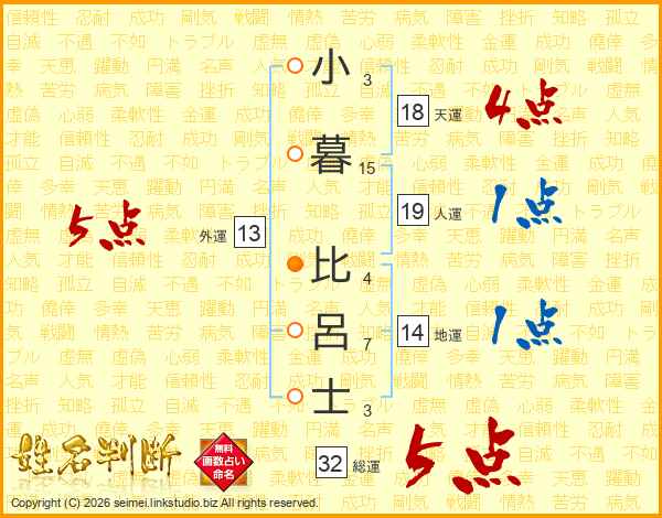 小暮比呂士さんの総運は32画の5点!