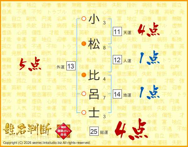 小松比呂士さんの総運は25画の4点!