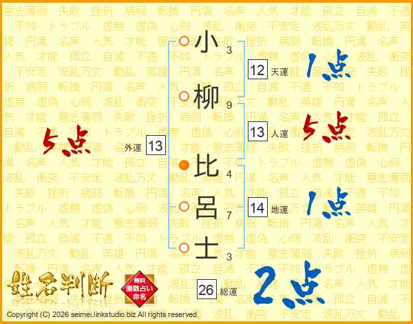 小柳比呂士さんの総運は26画の2点!