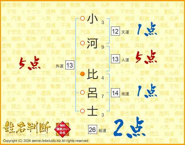 小河比呂士さんの総運は26画の2点!