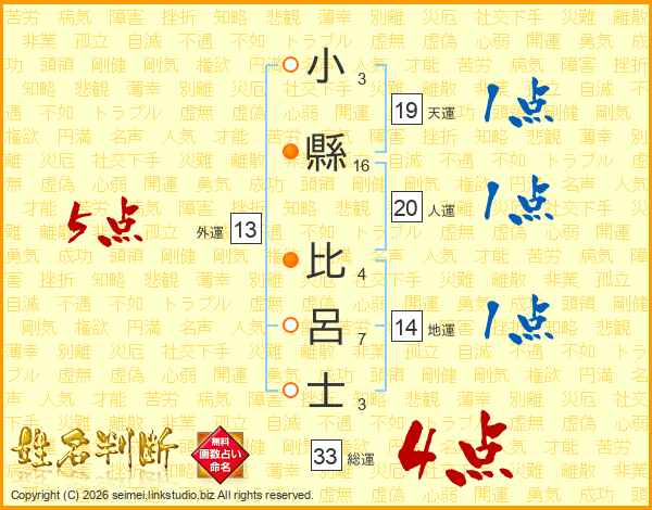 小縣比呂士さんの総運は33画の4点!