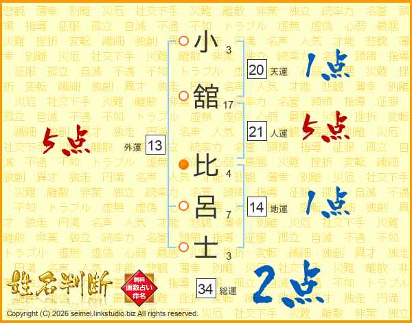 小(3画)舘(17画) 比(4画)呂(7画)士(3画)