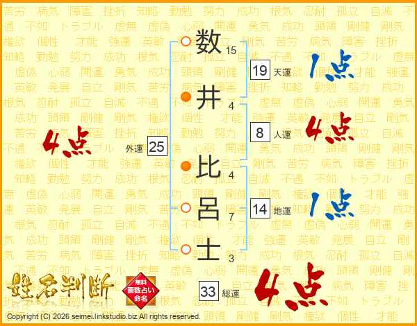 数井比呂士さんの総運は33画の4点!