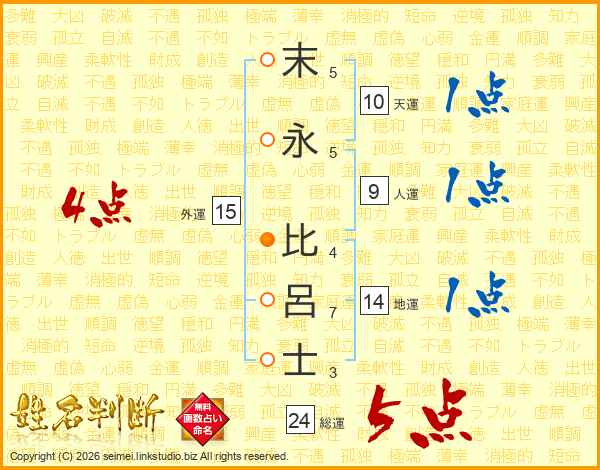 末永比呂士さんの総運は24画の5点!