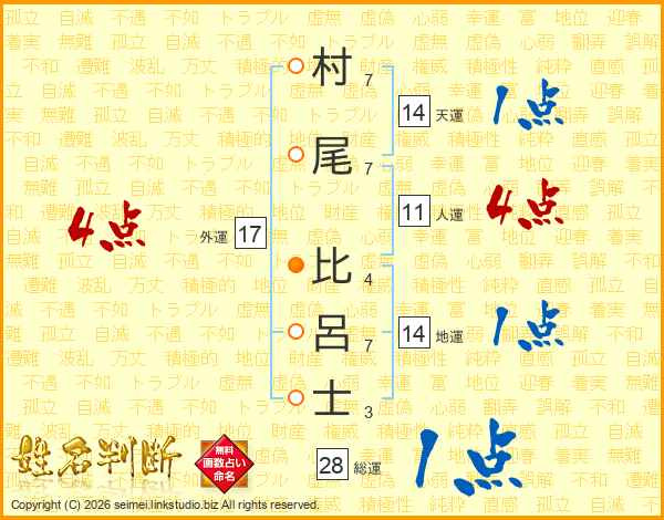 村尾比呂士さんの総運は28画の1点!