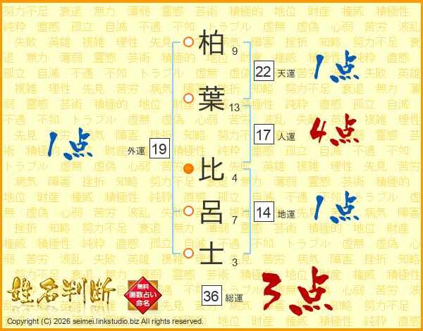 柏葉比呂士さんの総運は36画の3点!
