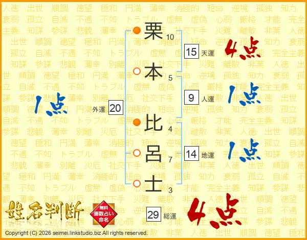 栗(10画)本(5画) 比(4画)呂(7画)士(3画)