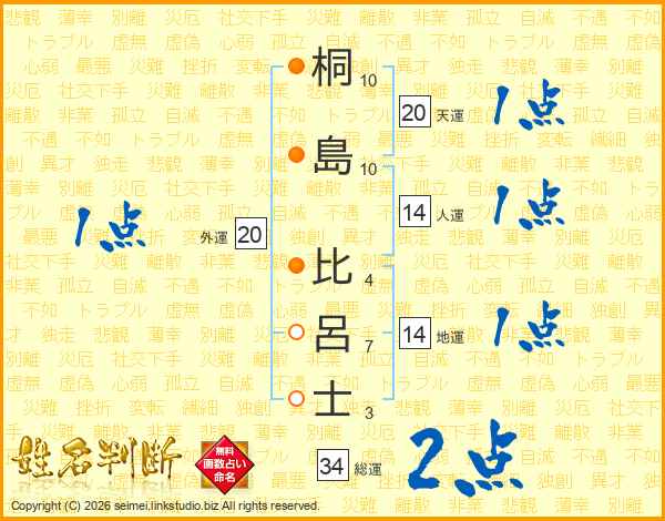 桐(10画)島(10画) 比(4画)呂(7画)士(3画)
