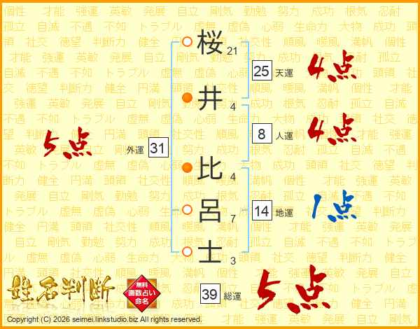 桜(21画)井(4画) 比(4画)呂(7画)士(3画)
