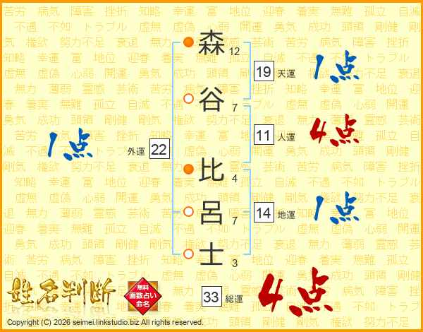 森谷比呂士さんの総運は33画の4点!