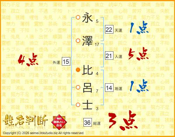 永澤比呂士さんの総運は36画の3点!