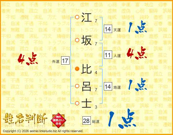 江坂比呂士さんの天運は14画の1点!