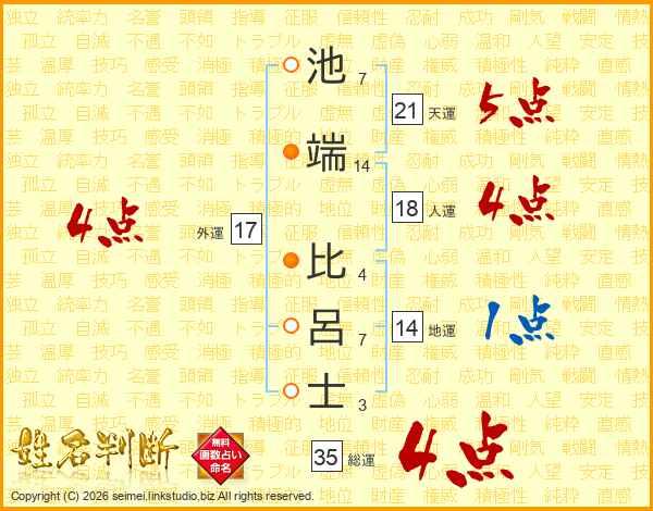 池端比呂士さんの総運は35画の4点!