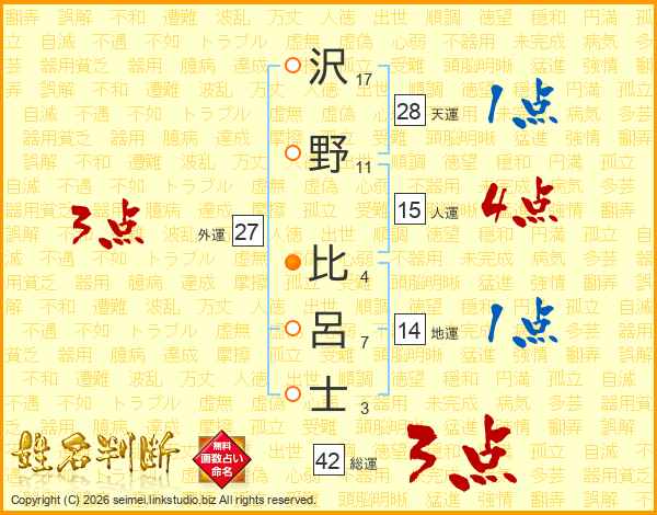 沢野比呂士さんの総運は42画の3点!