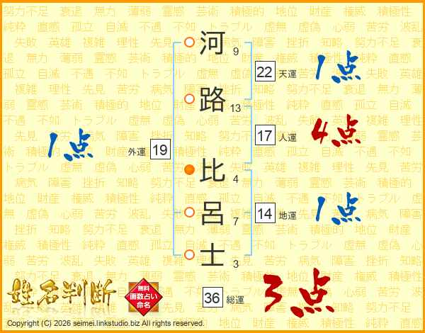 河(9画)路(13画) 比(4画)呂(7画)士(3画)