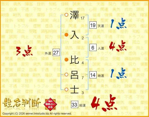 澤(17画)入(2画) 比(4画)呂(7画)士(3画)