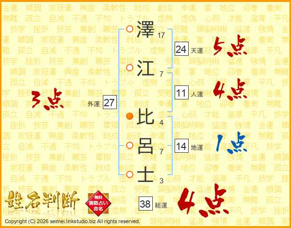 澤江比呂士さんの総運は38画の4点!