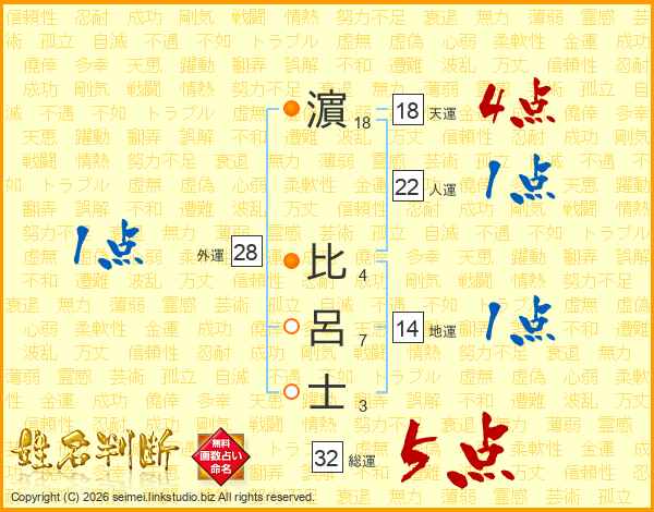 濵比呂士さんの総運は32画の5点!