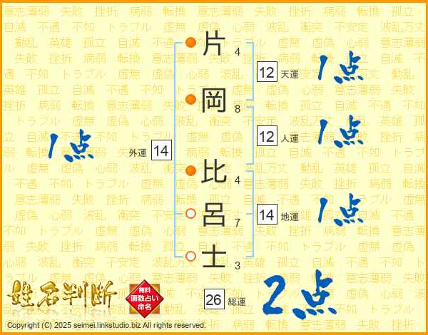 片(4画)岡(8画) 比(4画)呂(7画)士(3画)