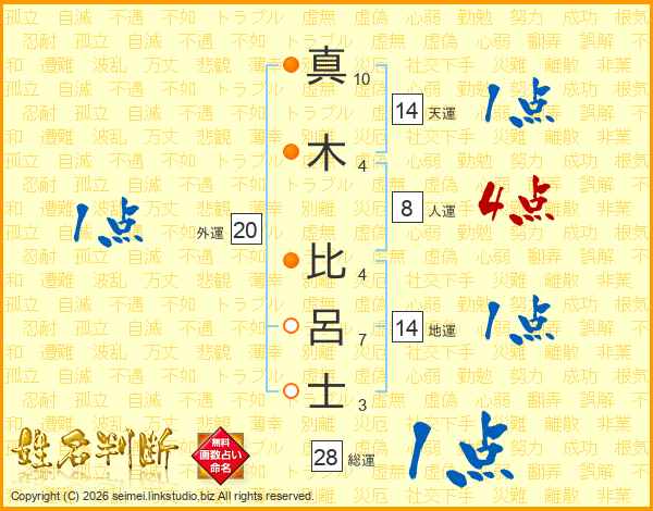 真木比呂士さんの天運は14画の1点!