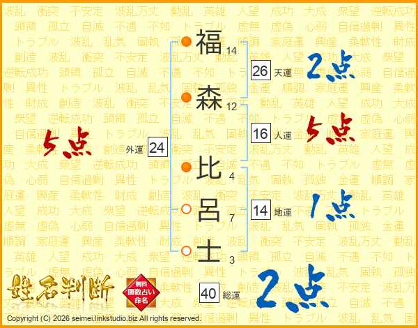 福(14画)森(12画) 比(4画)呂(7画)士(3画)