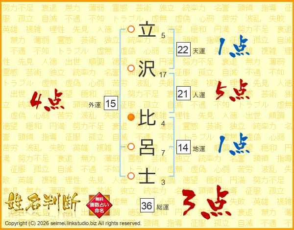 立(5画)沢(17画) 比(4画)呂(7画)士(3画)