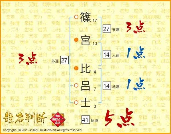 篠(17画)宮(10画) 比(4画)呂(7画)士(3画)