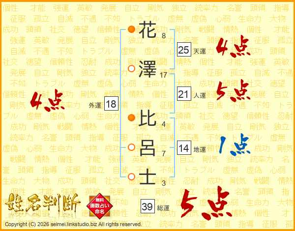 花(8画)澤(17画) 比(4画)呂(7画)士(3画)