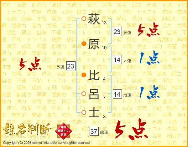 萩原比呂士さんの総運は37画の5点!