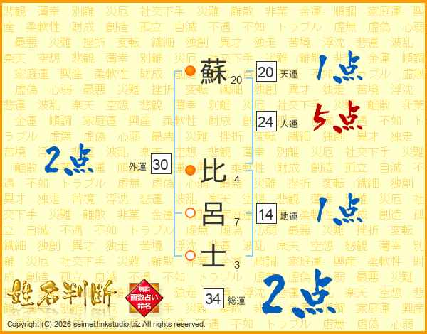 蘇(20画) 比(4画)呂(7画)士(3画)