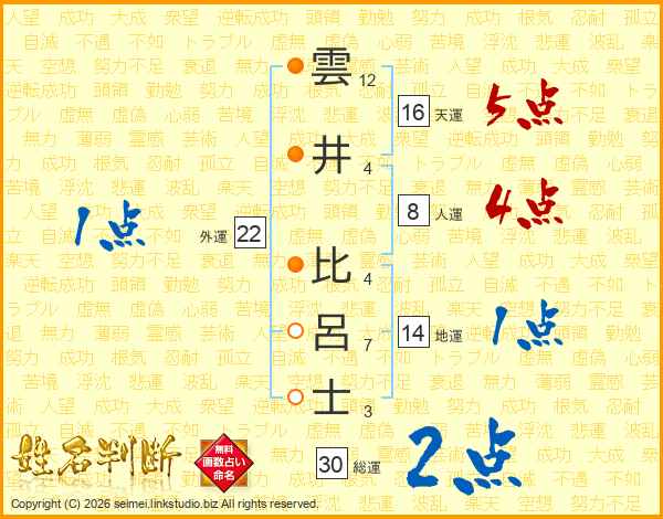 雲井比呂士さんの総運は30画の2点!