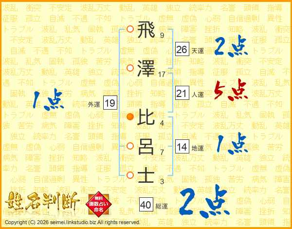飛(9画)澤(17画) 比(4画)呂(7画)士(3画)