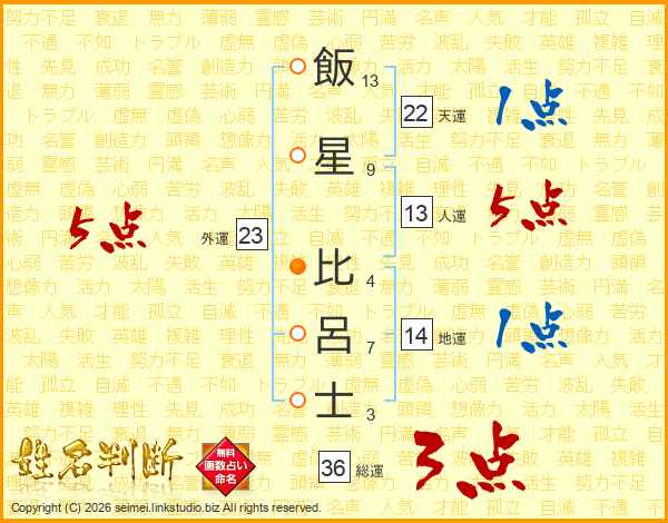 飯星比呂士さんの外運は23画の5点!