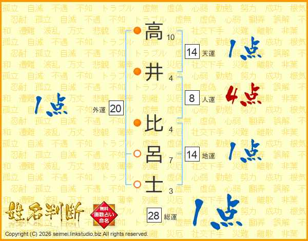 高井比呂士さんの天運は14画の1点!
