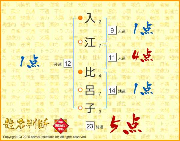 入江比呂子さんの総運は23画の5点!