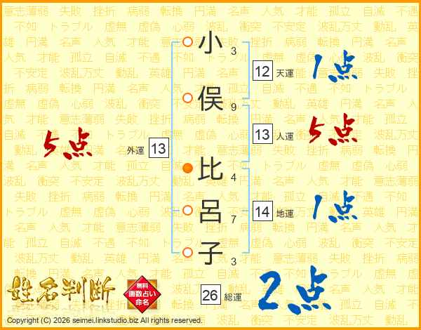 小俣比呂子さんの総運は26画の2点!