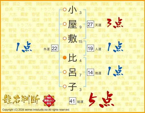 小屋敷比呂子さんの総運は41画の5点!