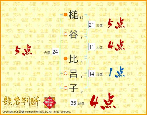 槌谷比呂子さんの総運は35画の4点!