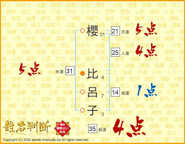 櫻比呂子さんの外運は31画の5点!