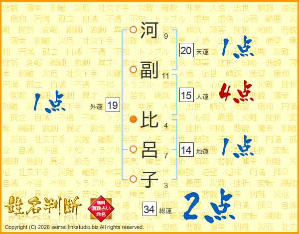 河(9画)副(11画) 比(4画)呂(7画)子(3画)