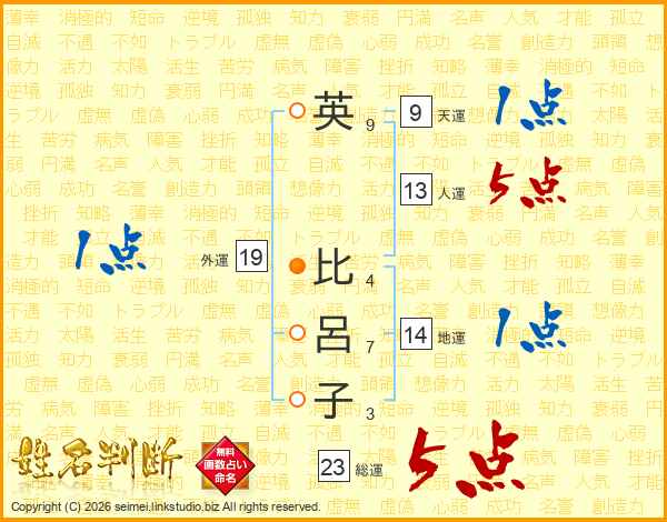 英(9画) 比(4画)呂(7画)子(3画)