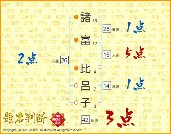 諸(16画)富(12画) 比(4画)呂(7画)子(3画)