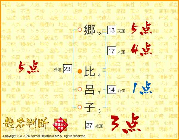 郷(13画) 比(4画)呂(7画)子(3画)