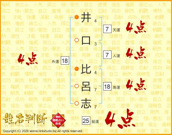井(4画)口(3画) 比(4画)呂(7画)志(7画)