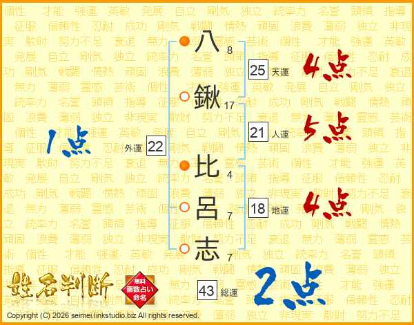 八鍬比呂志さんの総運は43画の2点!