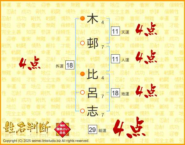 木邨比呂志さんの総運は29画の4点!