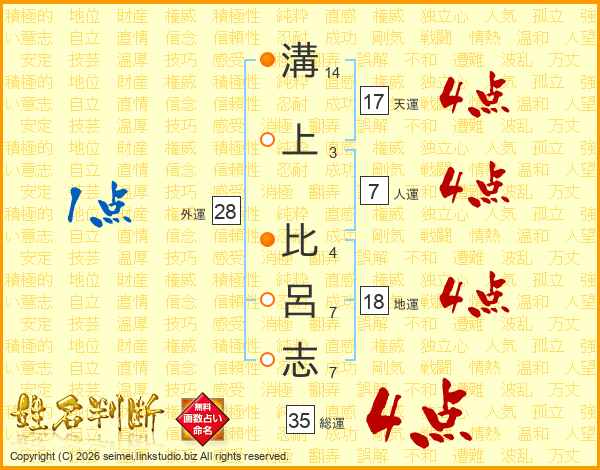 溝(14画)上(3画) 比(4画)呂(7画)志(7画)