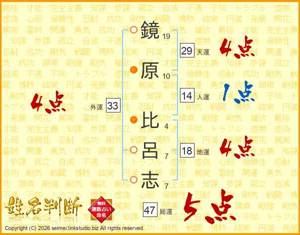 鏡(19画)原(10画) 比(4画)呂(7画)志(7画)