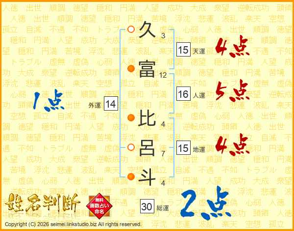 久富比呂斗さんの天運は15画の4点!